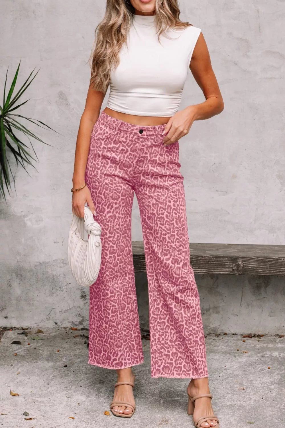 Leopard Frayed Edge Wide Leg High Waist Jeans