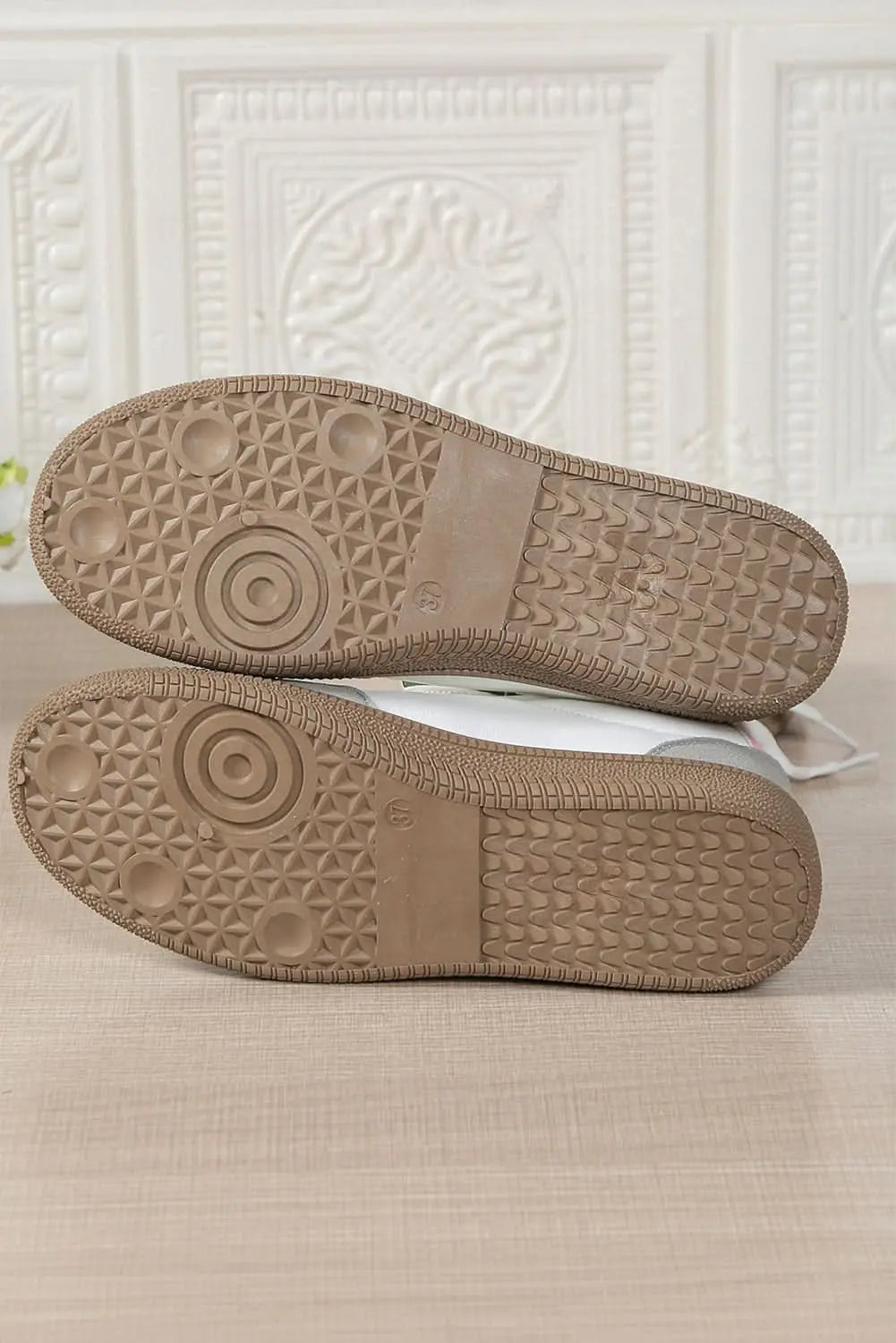 Crafted from high-quality PU leather, these sneakers are built for durability and easy maintenance. The lace-up closure provides a secure, adjustable fit for all-day comfort, while the pink stripes add a playful, fashion-forward flair.