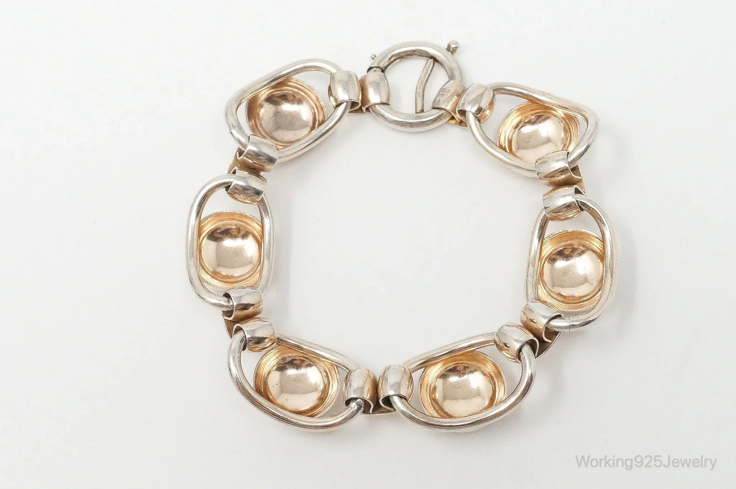 Vintage Designer Napier Modern Large Links Gold Tone Sterling Silver Bracelet