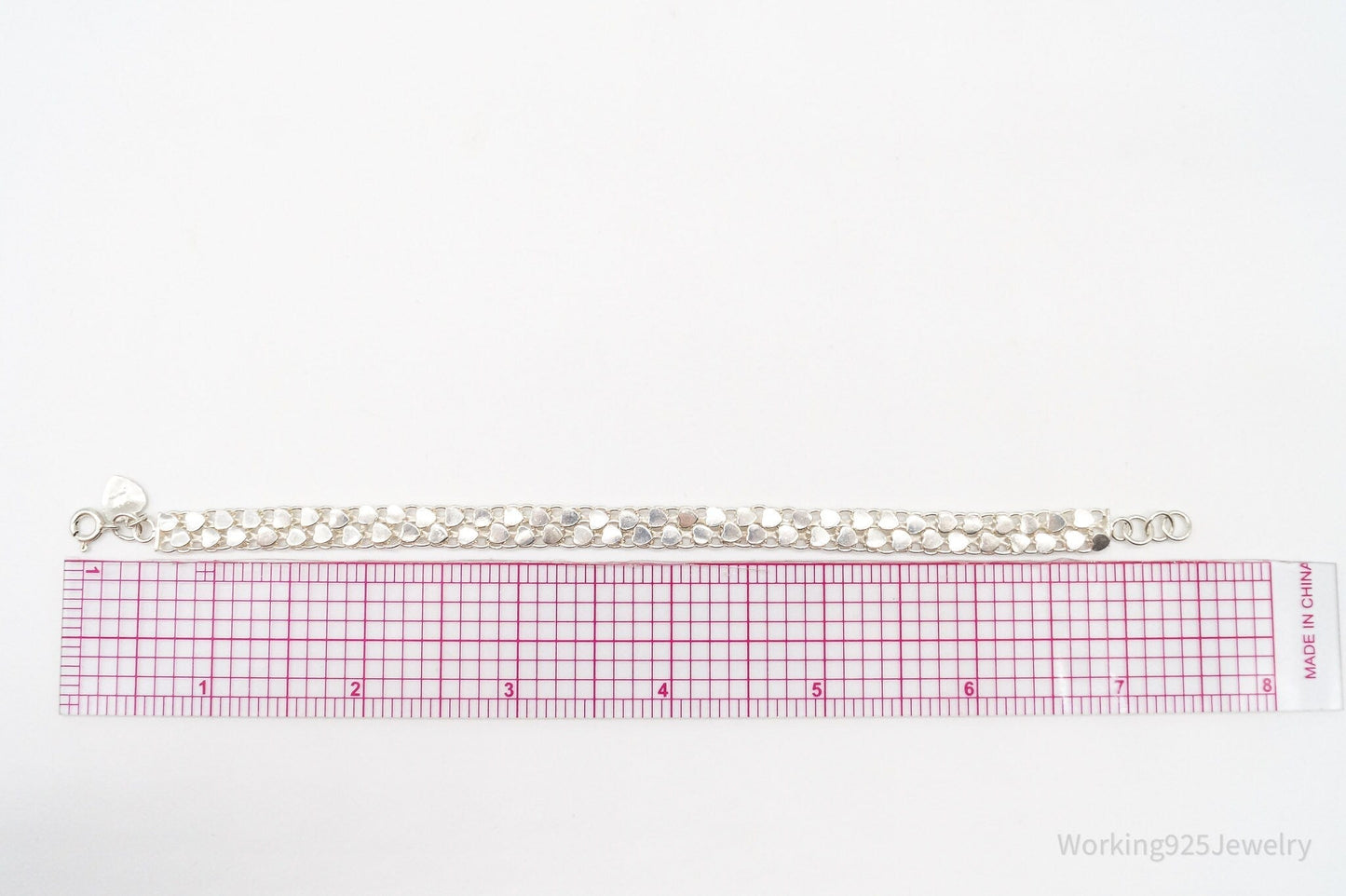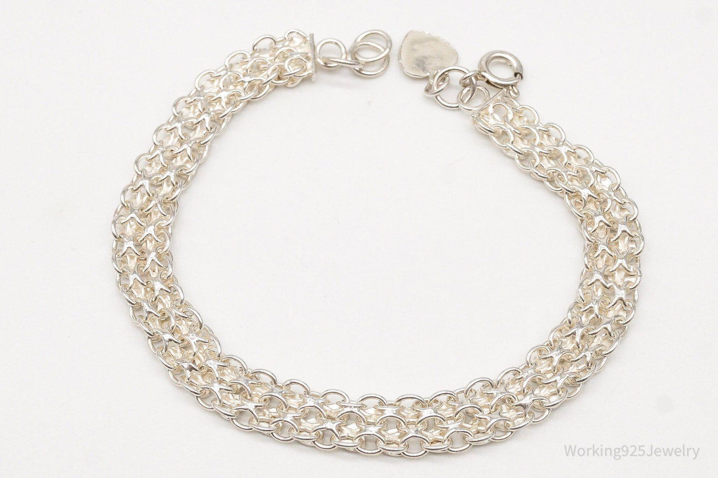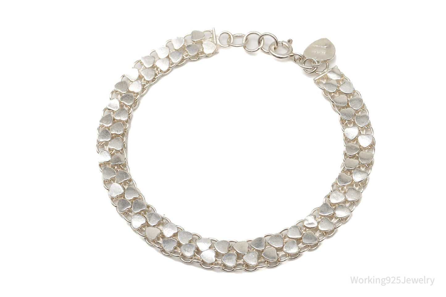 Vintage Hearts Mesh Chain Link Silver Bracelet Working 925 Jewelry