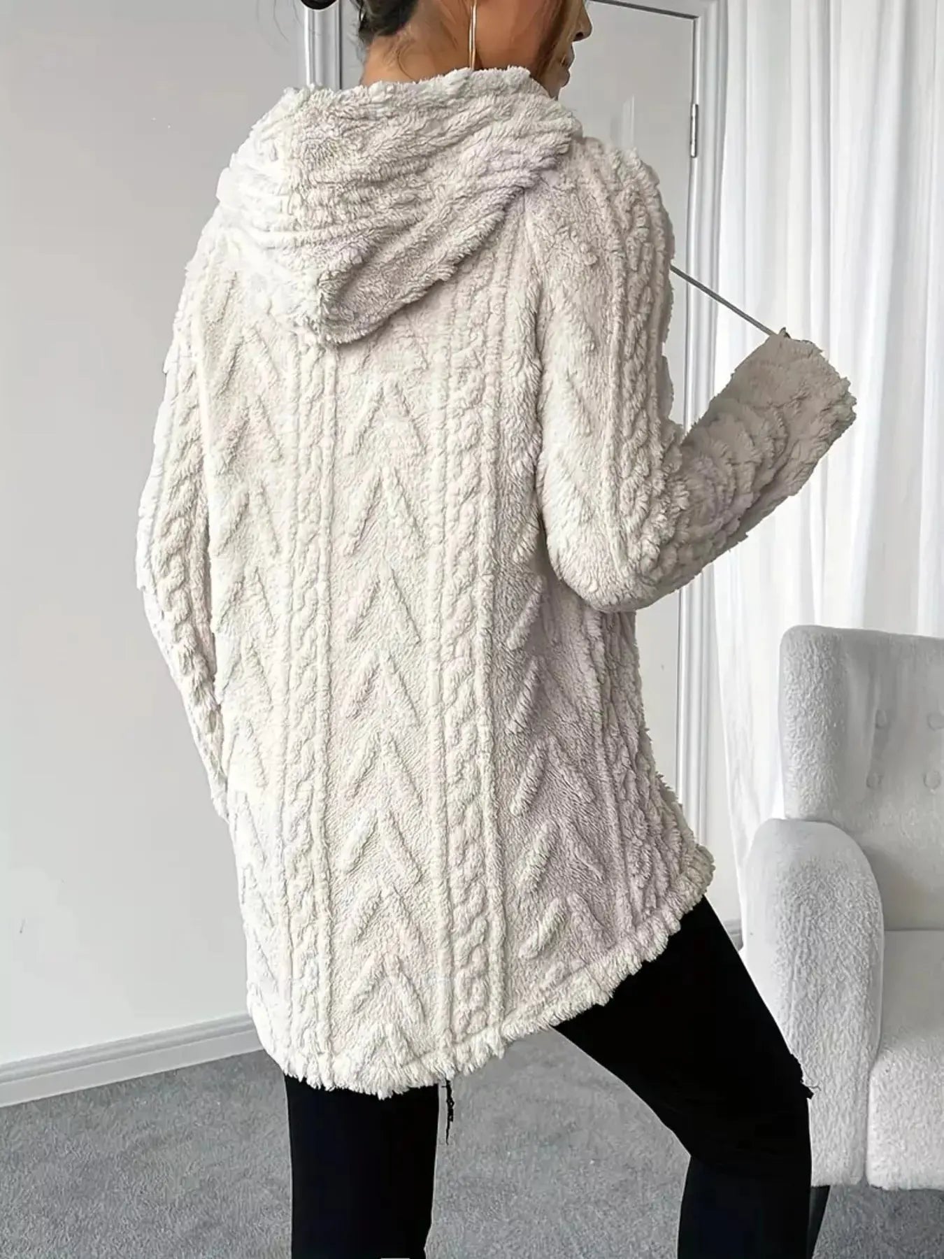 Cozy Textured Drawstring Fleece Hoodie - Plush Fashion Hub