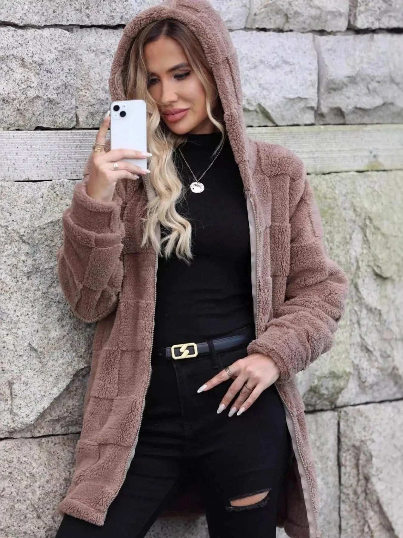 Oversized Fleece Zip Up Hooded Outerwear With Pockets Gilded Glamour Shop
