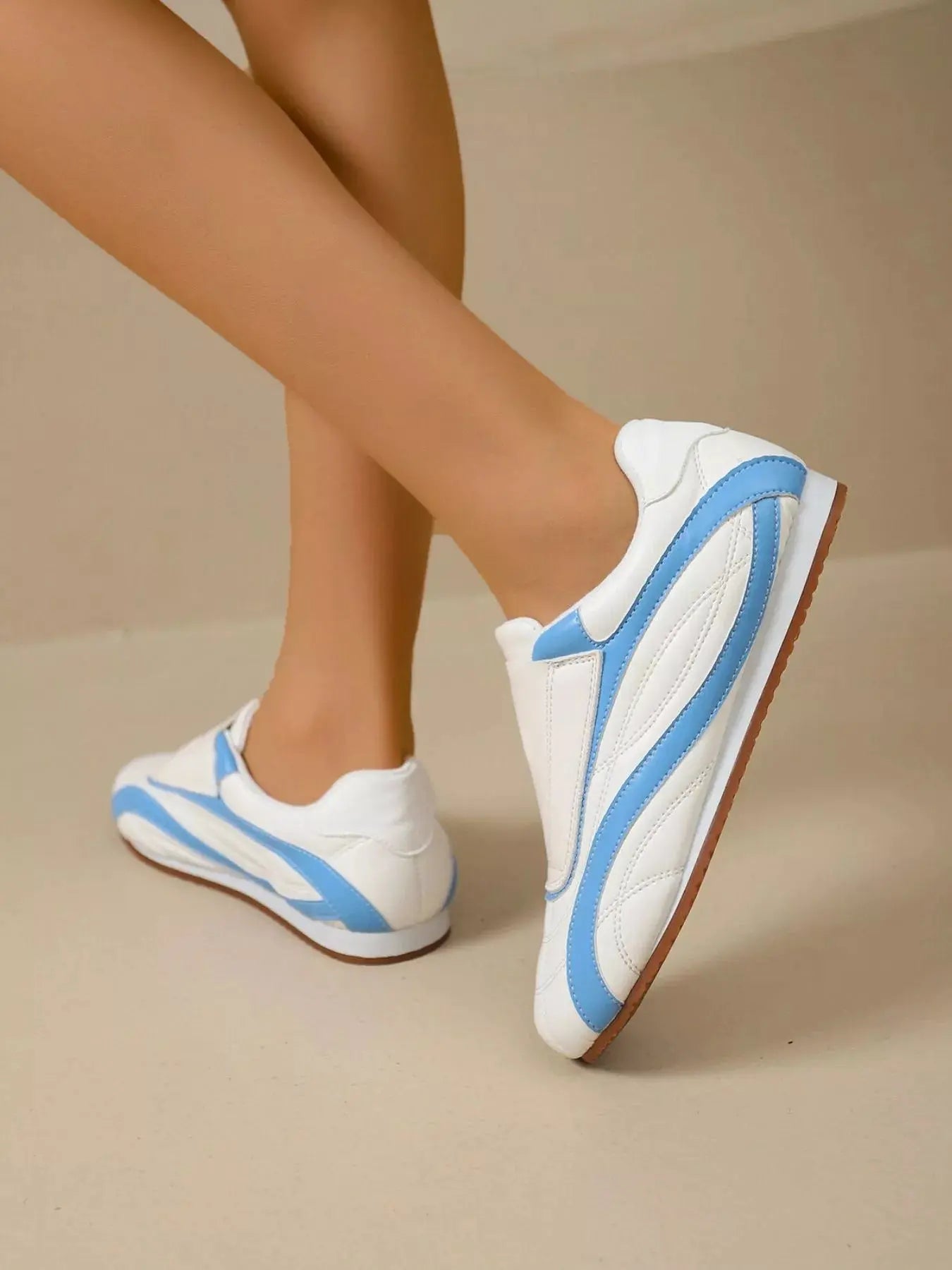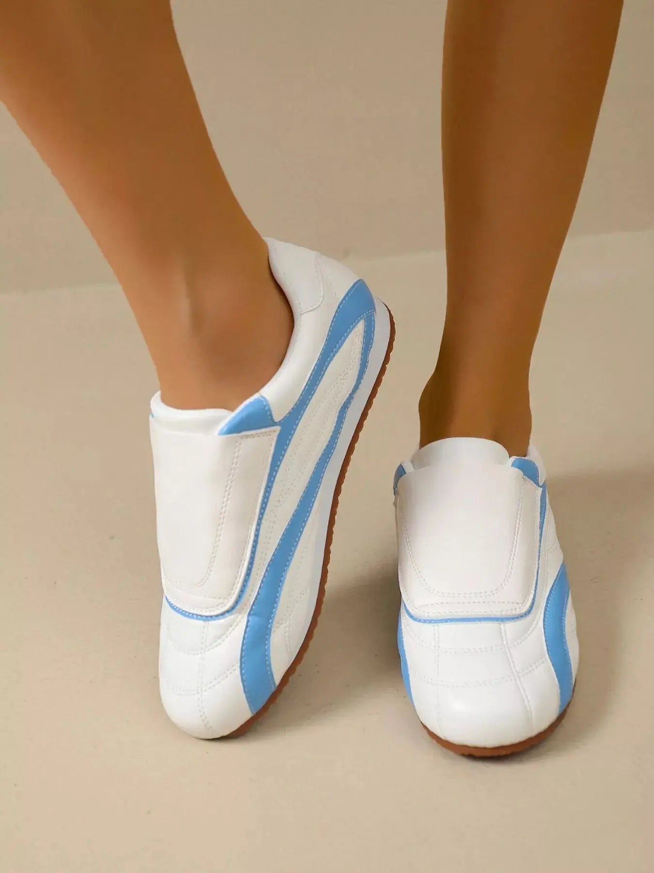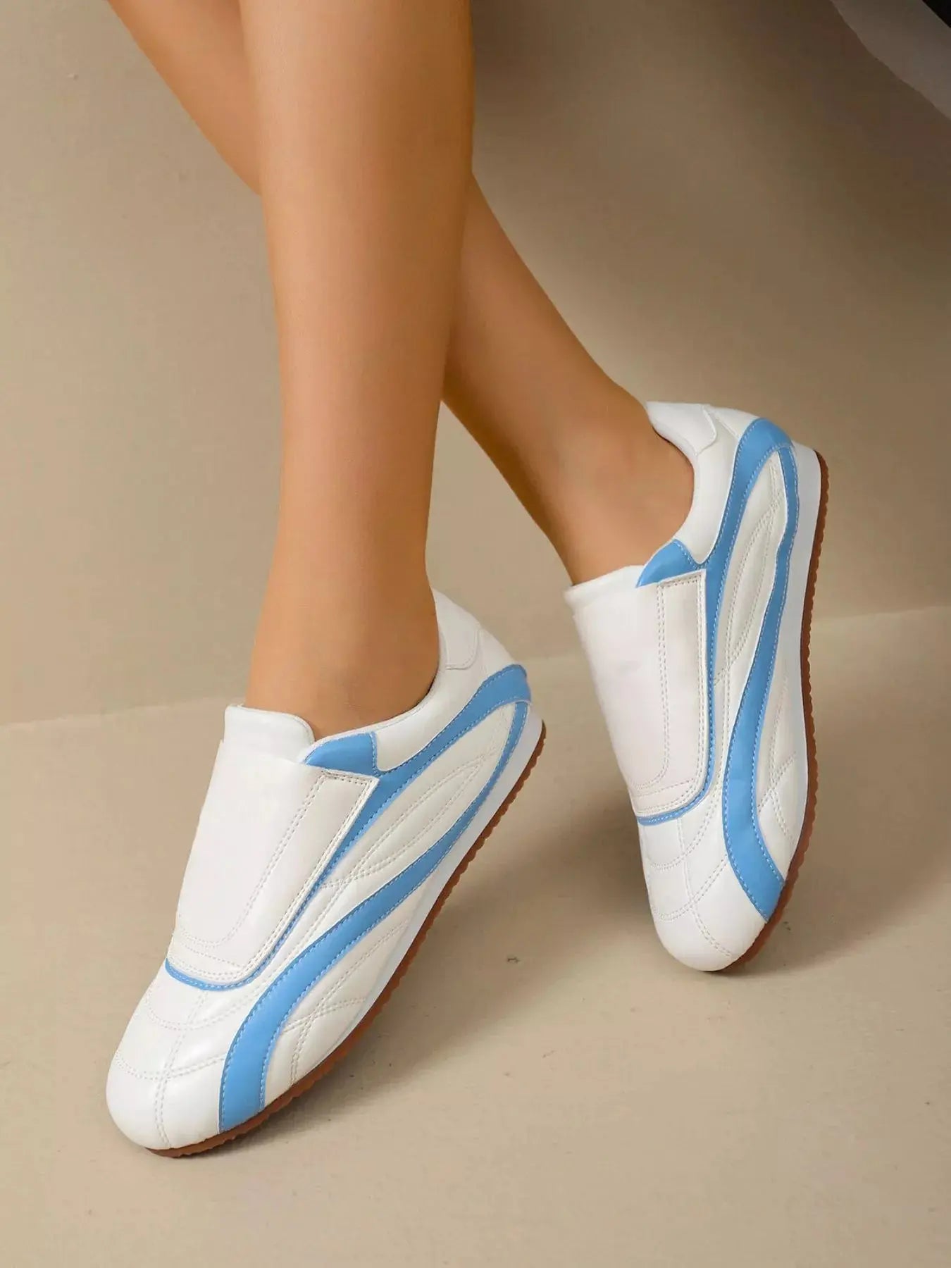 Contrast Round Toe Sneakers - Plush Fashion Hub