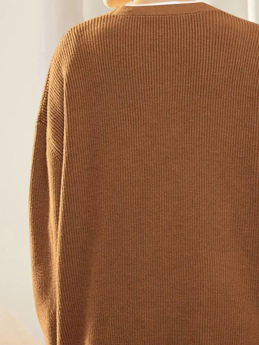 Button Down V-Neck Long Sleeve Cardigan - Plush Fashion Hub