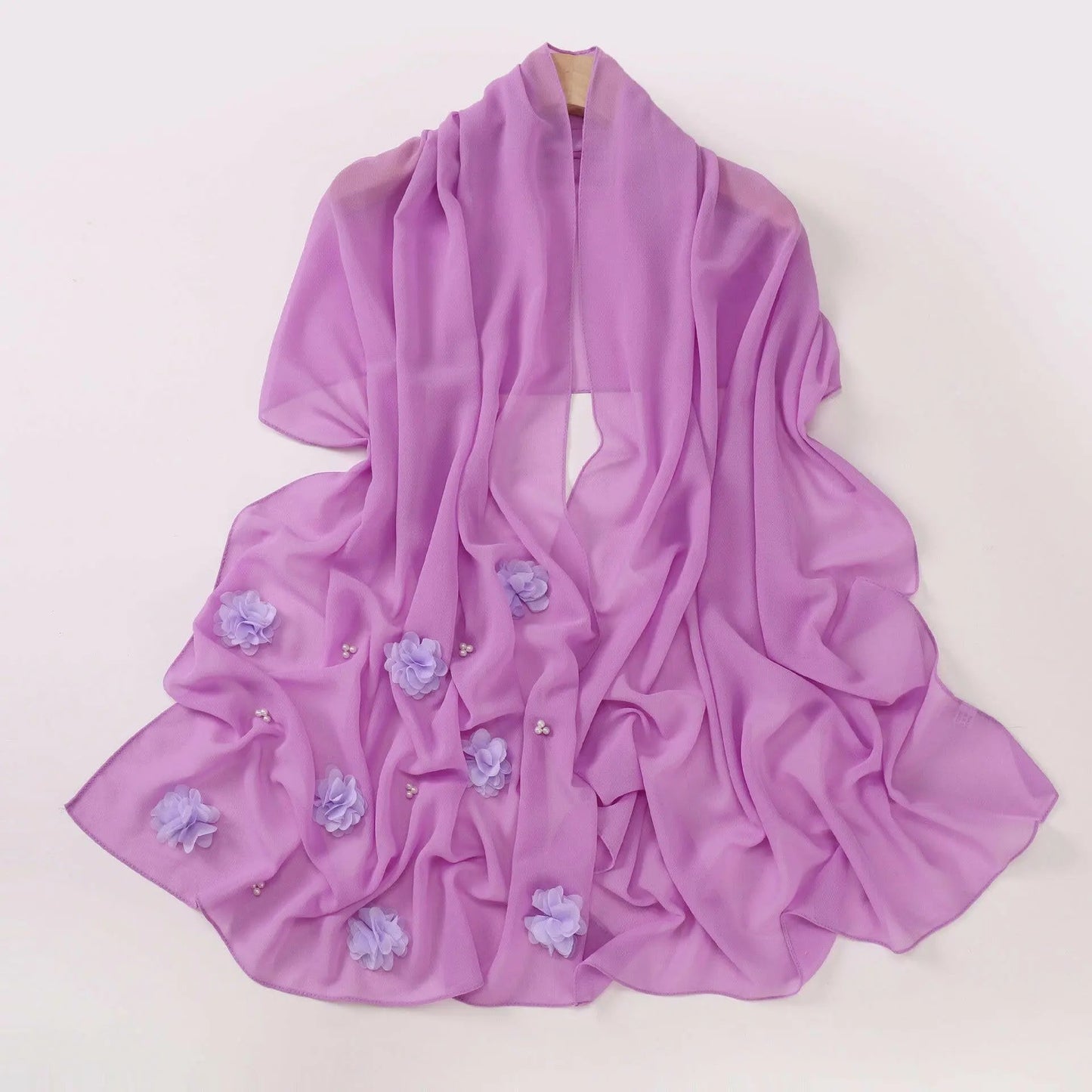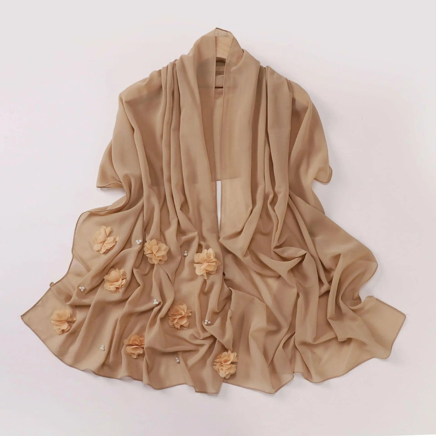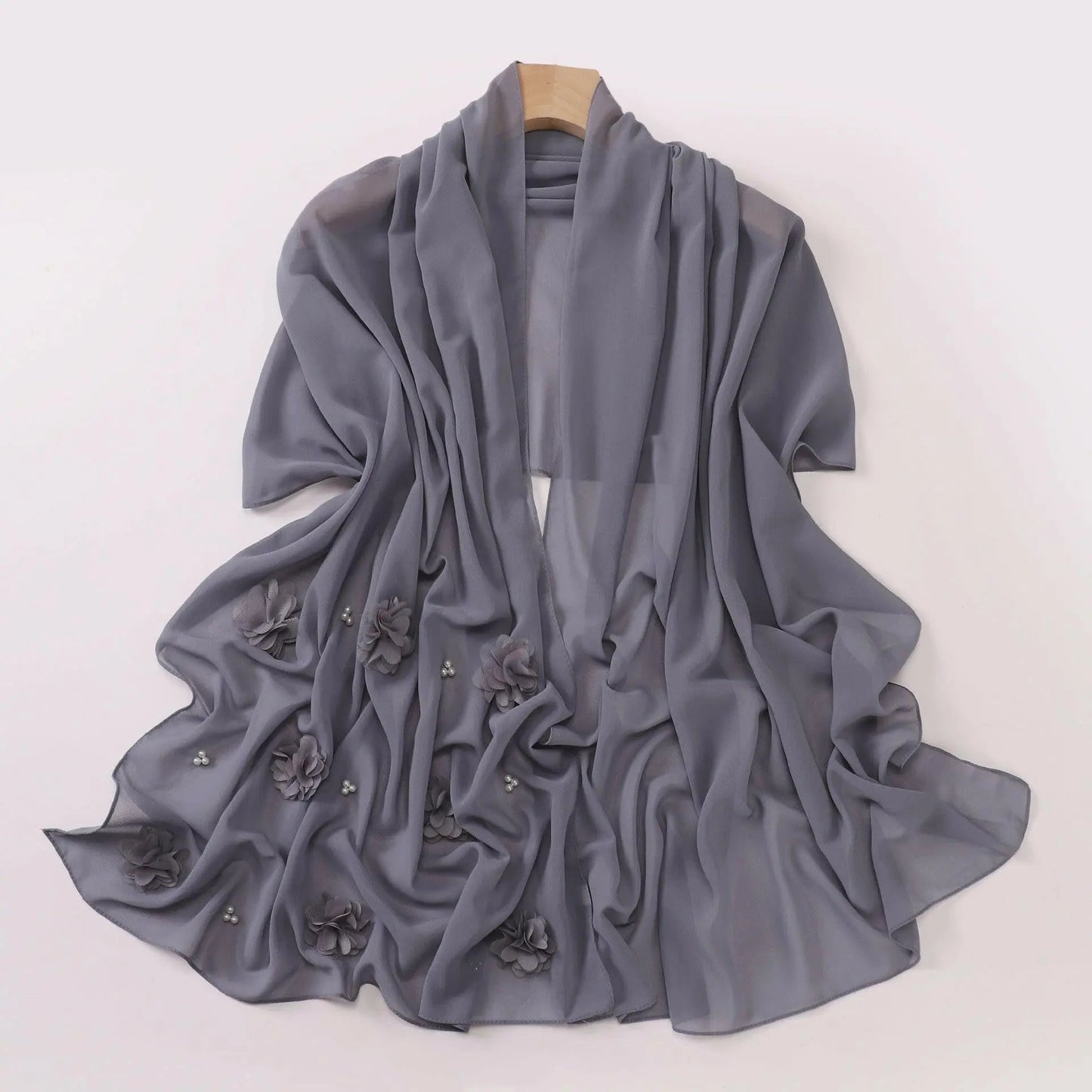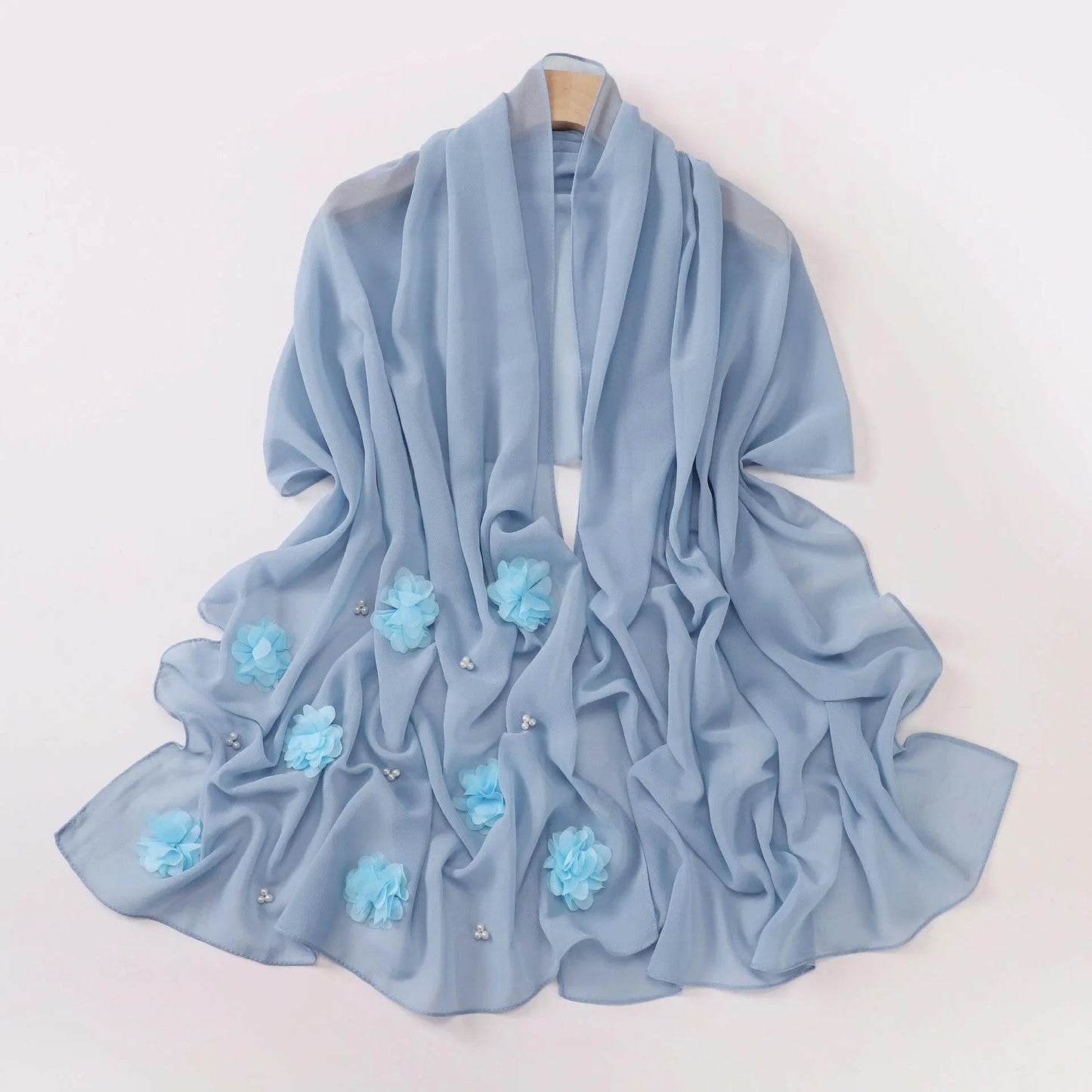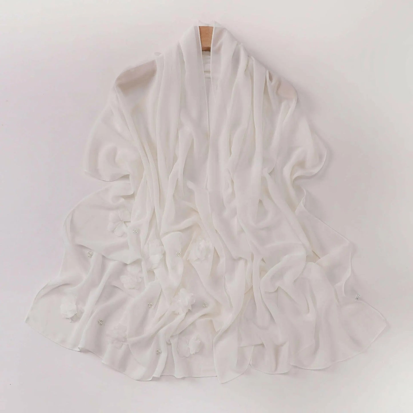 Pearl Chiffon Handmade Sticky Flower Beaded Scarf