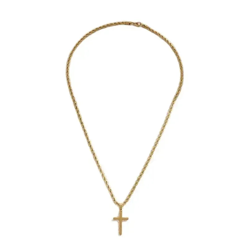 Precio regular $5.74This minimalist cross pendant necklace transcends gender boundaries, offering understated elegance for both men and women. Crafted in lustrous gold-tone metal, the sleek design resists tarnishing while maintaining its refined appearance through daily wear and special occasions alike. The unisex aesthetic makes it equally at home layered with other pieces or worn as a standalone statement. Whether you're seeking a versatile everyday accessory or a meaningful gift, this cross pendant delivers timeless sophistication that complements any wardrobe with quiet confidence.