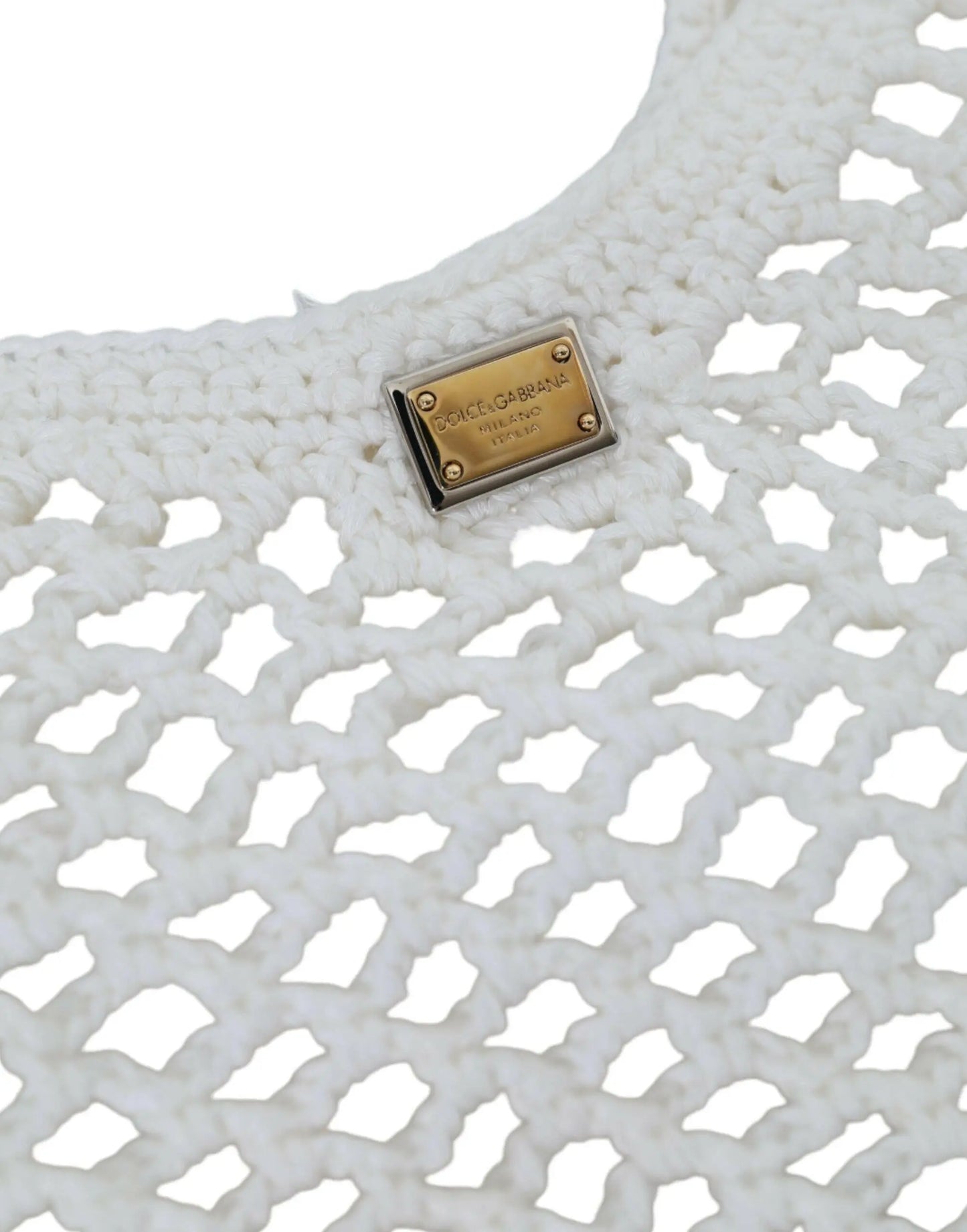 Dolce & Gabbana White Green Knitted Cotton Logo Shopping Tote Bag MaraFormigone