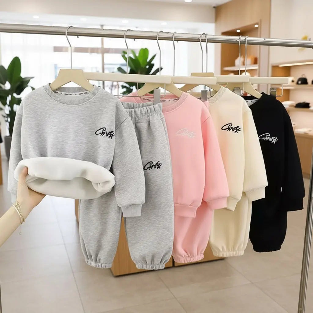 Keep your kids warm and stylish with this padded 2-piece winter outfit. Made with thick, soft, and comfortable fabric, this set includes a long-sleeve sweatshirt and matching trousers designed to keep children cozy during autumn and winter.
