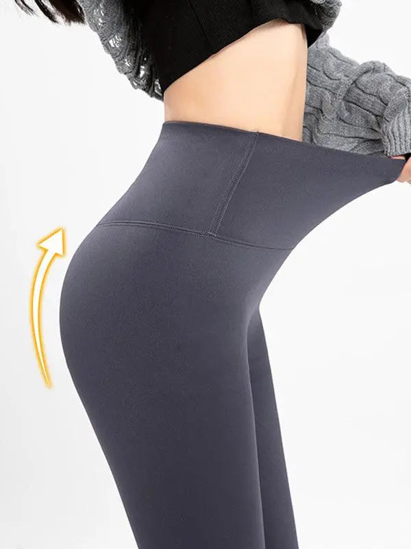 Skinny Leg Solid Color Elastic Fleece Leggings Plush Fashion Hub