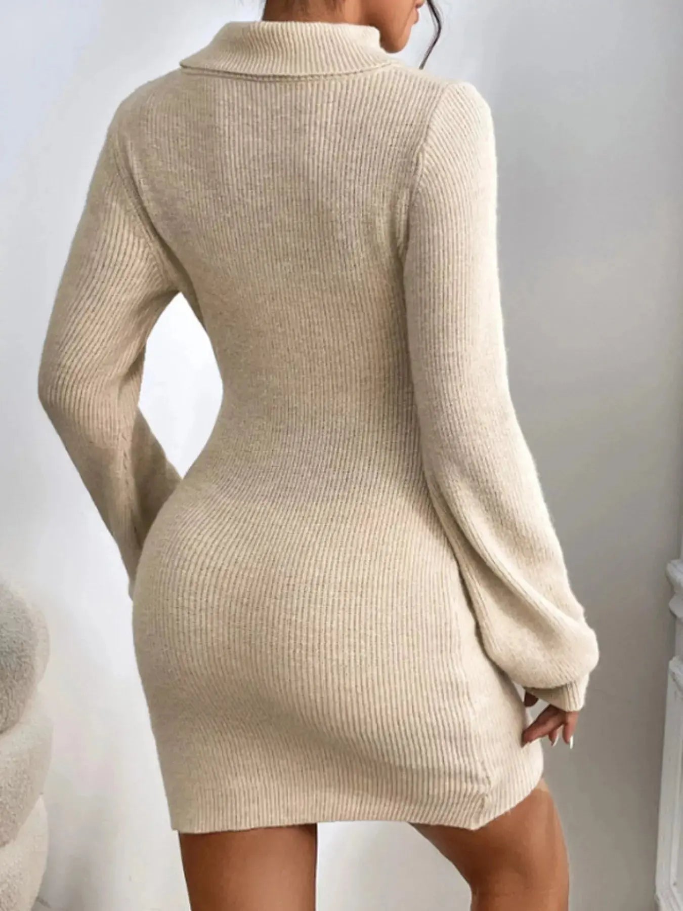 Turtleneck Ribbed Knit Sweater Dress - Plush Fashion Hub