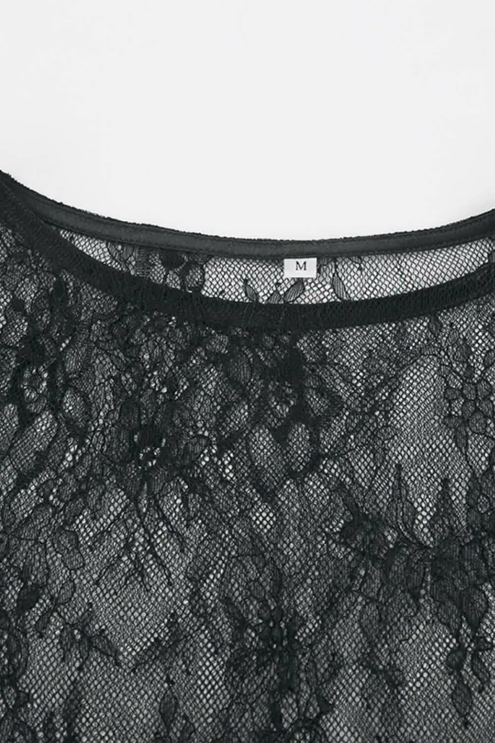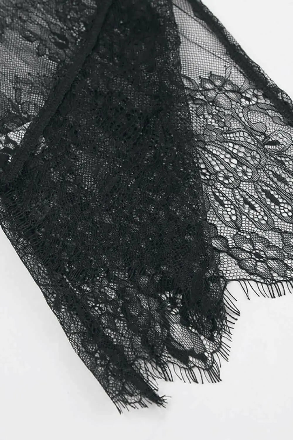 Made from premium lace and sheer fabric, each piece is hand-selected for its feather-light touch and luxurious appearance. - Delicate fringe detailing along the hem and sleeves adds dynamic movement and distinctive flair. - The elegant round neckline beautifully frames the face, enhancing natural beauty while allowing for stylish accessorizing. - Sheer long sleeves offer a perfect balance of alluring transparency and refined coverage, ideal for versatile layering. Wearing this lace top signals both status and a refined taste for classic fashion, making a statement of confidence and individuality. Produced in limited quantities per color, it offers a rare opportunity to own a truly exclusive piece.