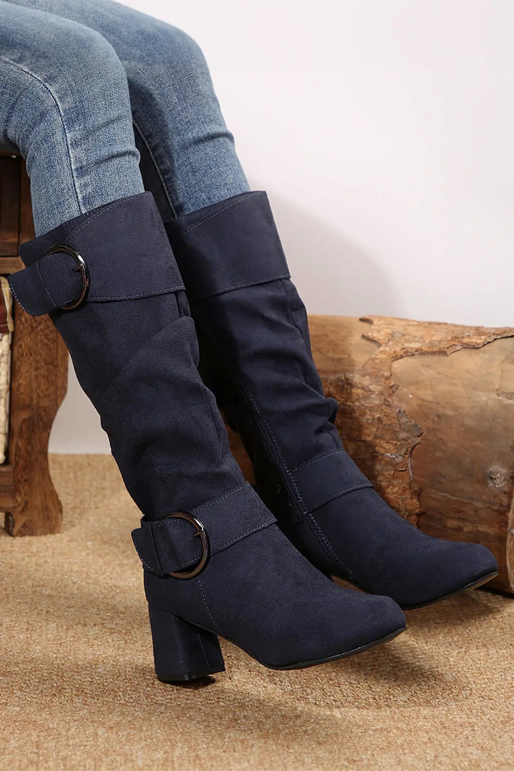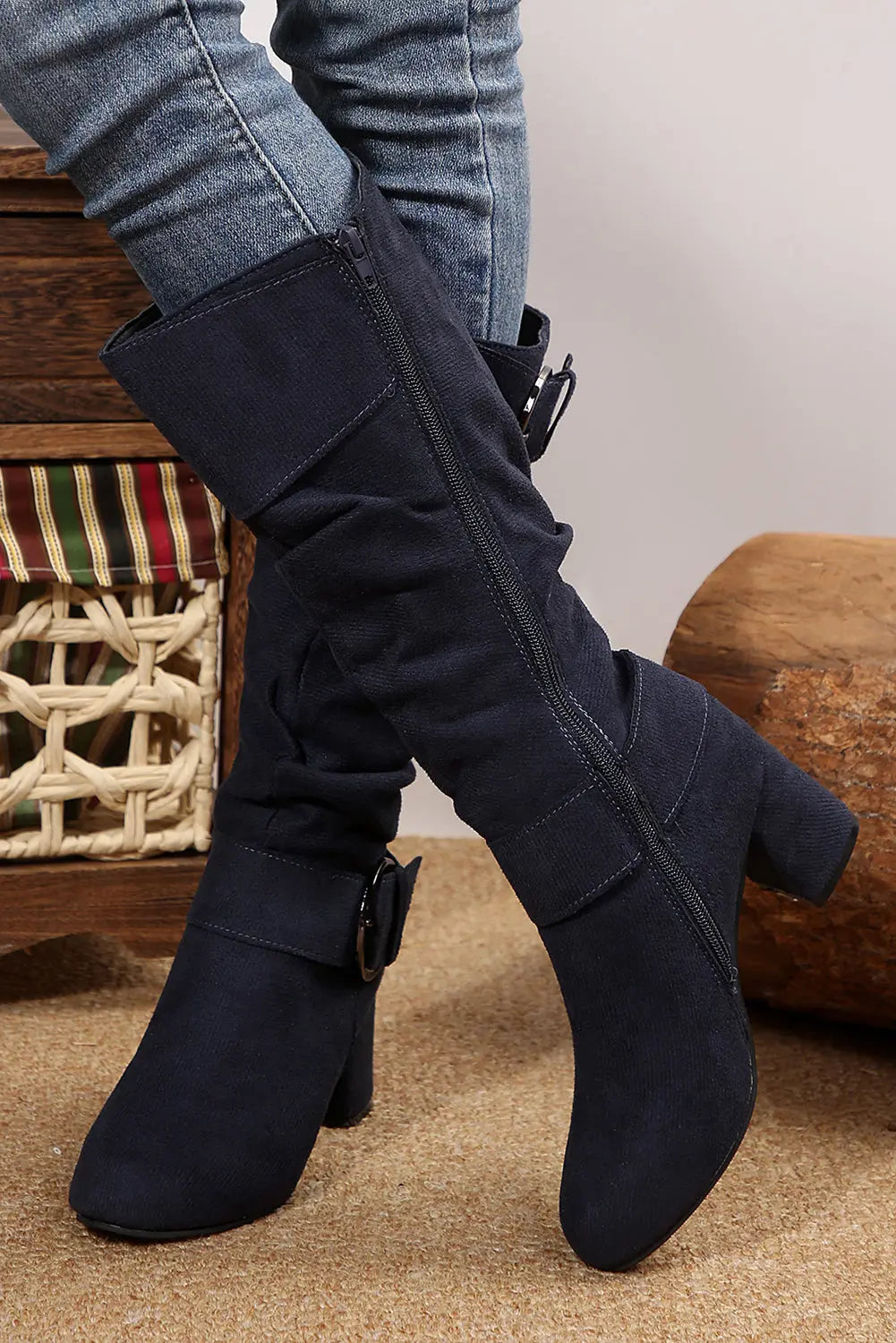Step out in style with these chic mid-calf boots crafted from plush suede. The double buckle detail brings a fun, edgy vibe, while the side zipper makes slipping them on a breeze. Perfect for adding a trendy twist to any outfit!