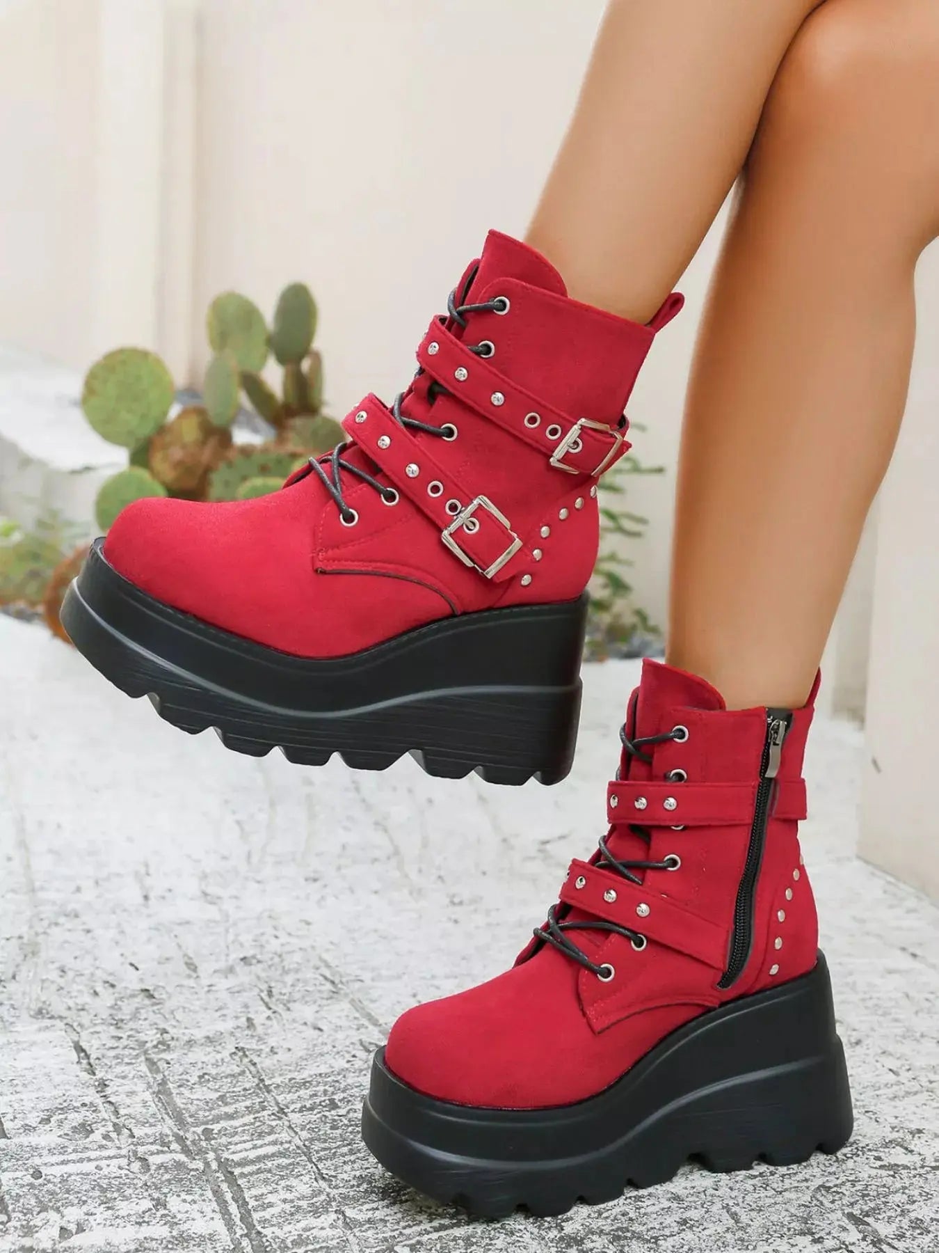 Lace Up Platform Wedge Boots - Plush Fashion Hub