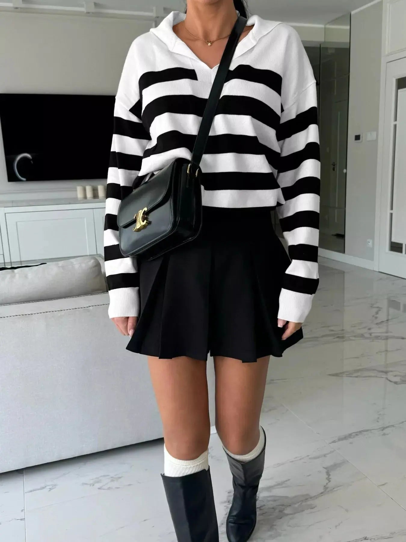 Premium materials define this knit top, featuring a luxurious blend of acrylic, polyamide, and polyester that delivers unparalleled softness and all-day breathability. The on-trend dropped shoulder silhouette offers a sophisticated yet relaxed look, perfect for casual outings, brunch dates, or cozy nights at home. Timeless stripes add a chic, versatile touch, making this shirt a lasting staple in any wardrobe.