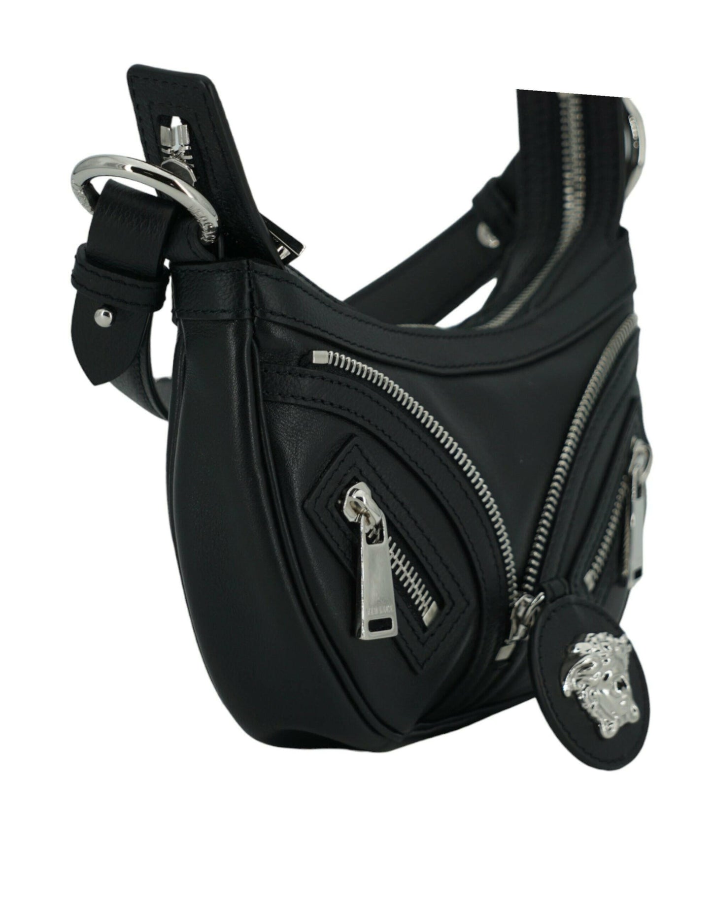 Details: Zip closure, medusa head logo, 1 main compartment, interior zip pocket, a silver-tone hardware with removable and adjustable shoulder strap for shoulder or crossbody wear.
