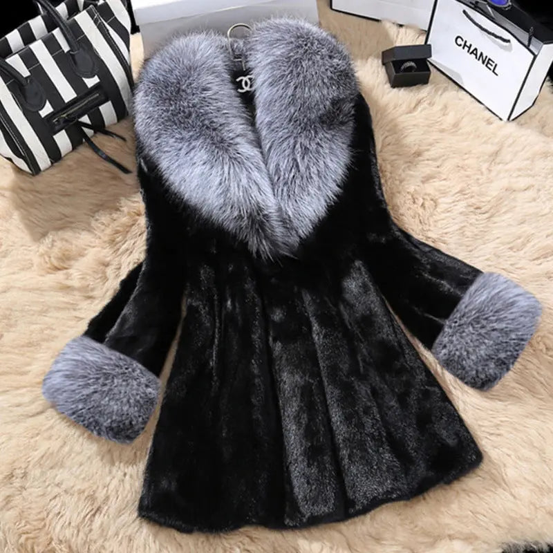 Women Autumn Winter Special Fur Coat Artificial Mink Hair Women Long Cut Coat Fox Fur Big Fur Collar Perfecsy