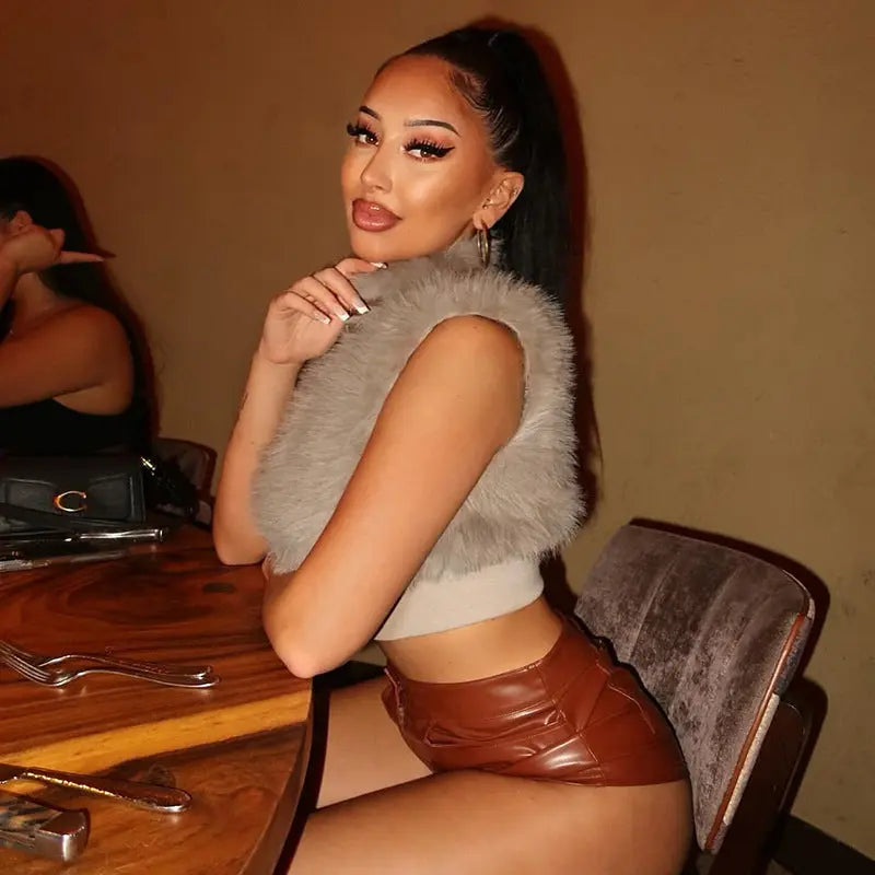 Women Clothing Autumn Winter Solid Color Sleeveless Plush Cardigan Zipper Vest Bare Cropped Slim Fit Top Perfecsy
