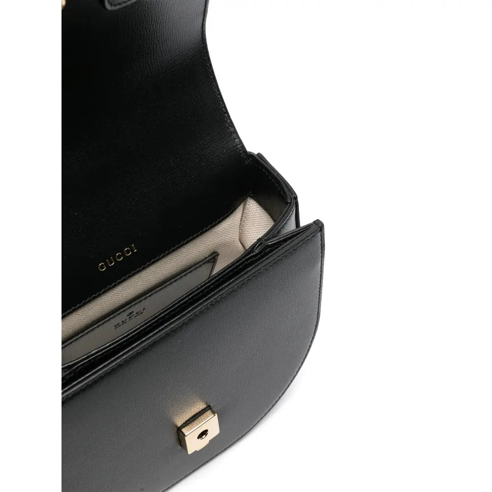 Preço regular $2,609.00 USDblack calf leather smooth grain curve-edge body single flat top handle adjustable detachable shoulder strap signature Horsebit detail main compartment internal logo stamp internal patch pocket internal slip pocket contrast lining gold-tone hardware foldover top clasp fastening This piece comes complete with a protective dust bag.