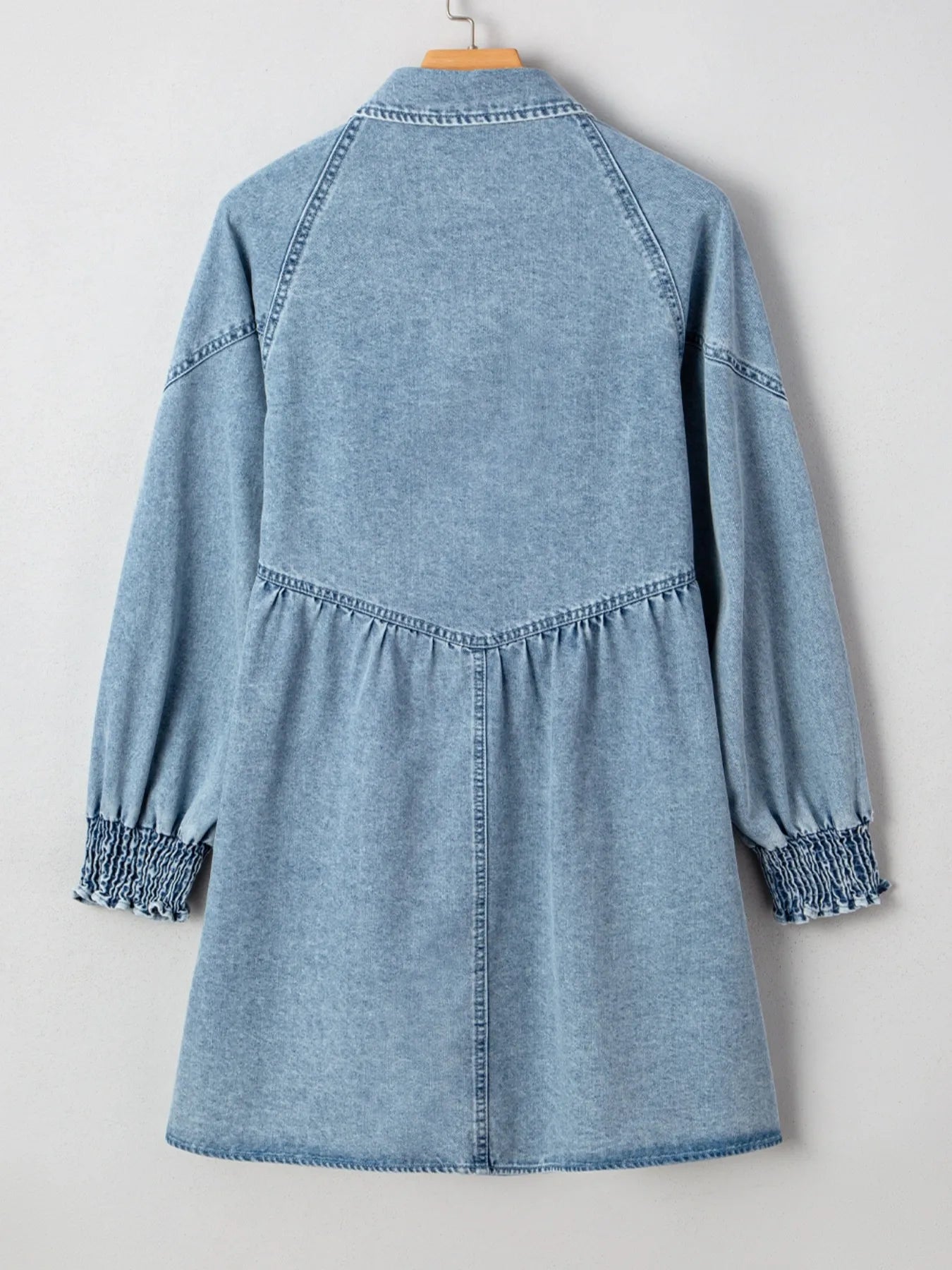 Button-Up Denim Shirt Dress with Smocked Cuffs