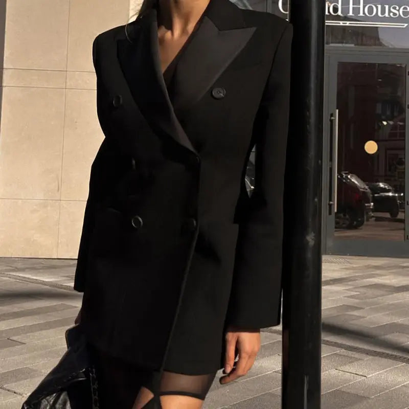 Autumn Winter Women Long Sleeved Coat Office Professional Double Breasted Mid Length Blazers Perfecsy