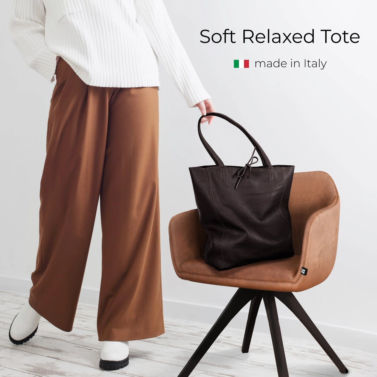 Calf Leather Tote Bag - Minimalist Tie Closure - Plush Fashion Hub