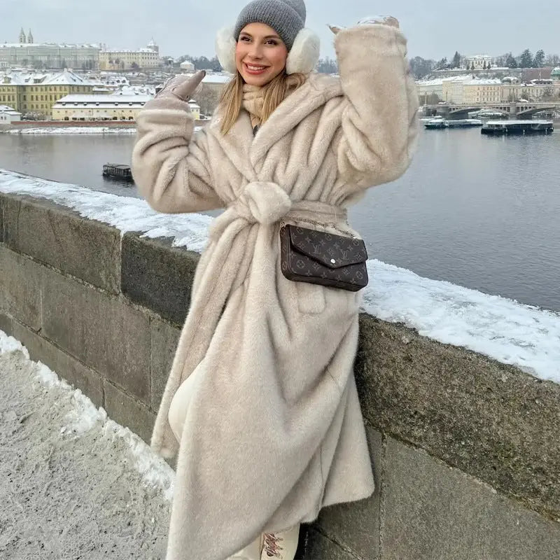 Fall Winter Hooded Faux Fur Coat Women Long Brand Mink Fur Leather Fur Coat Soft Environmental Fur Coat Perfecsy