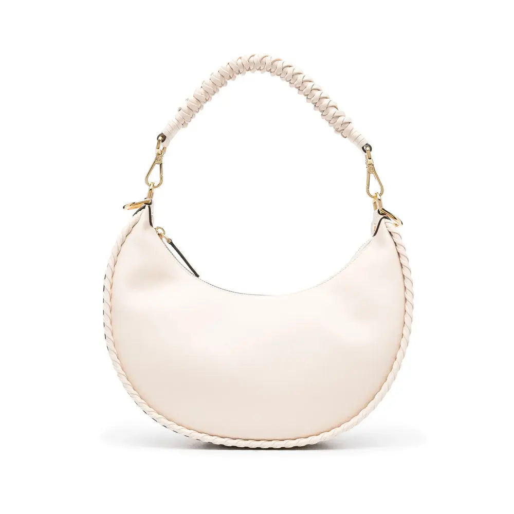 Preço regular $1,833.00 USDivory white calf leather braided edge single braided shoulder strap top zip fastening main compartment