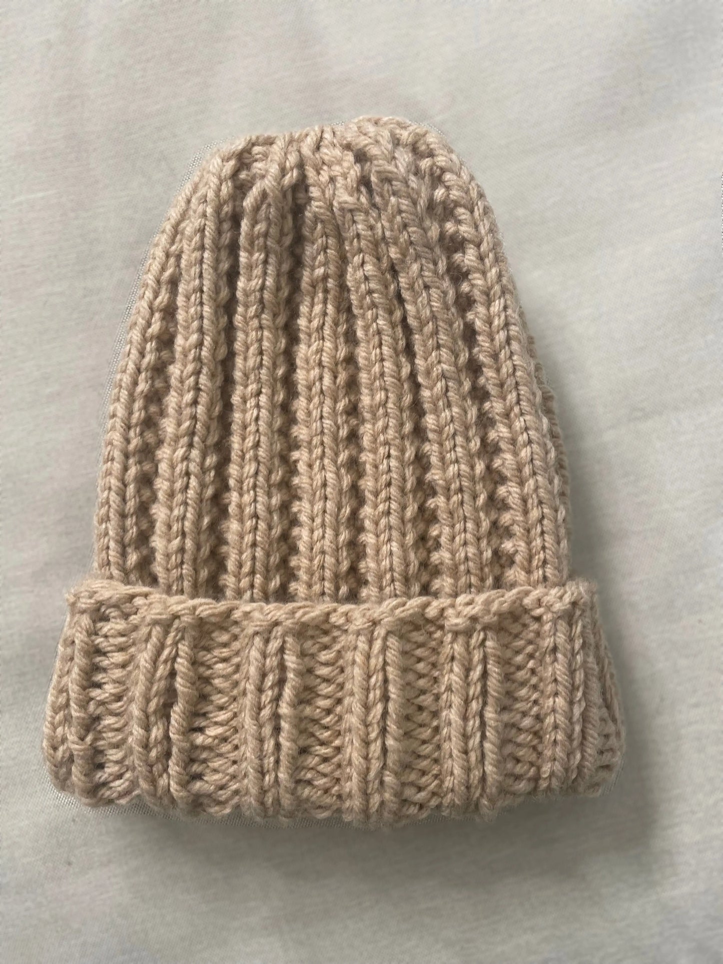 This folded brim knit hat offers a modern look with a bit of extra room on top, giving it a relaxed yet stylish vibe. Its simple design pairs effortlessly with any outfit, providing both comfort and a contemporary touch to your wardrobe.