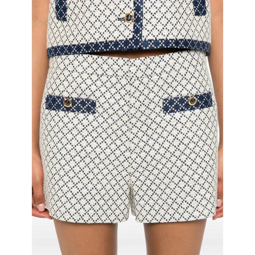 Preço regular $892.00 USDbeige geometric pattern navy blue pocket trim gold button embellishment high waist straight hem