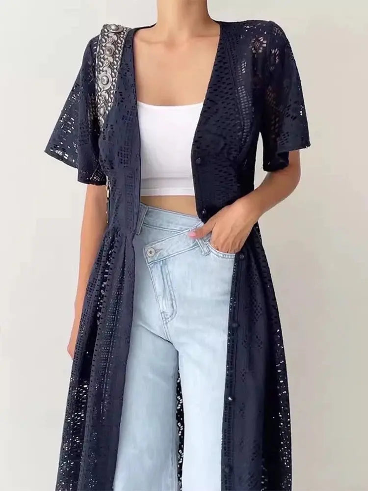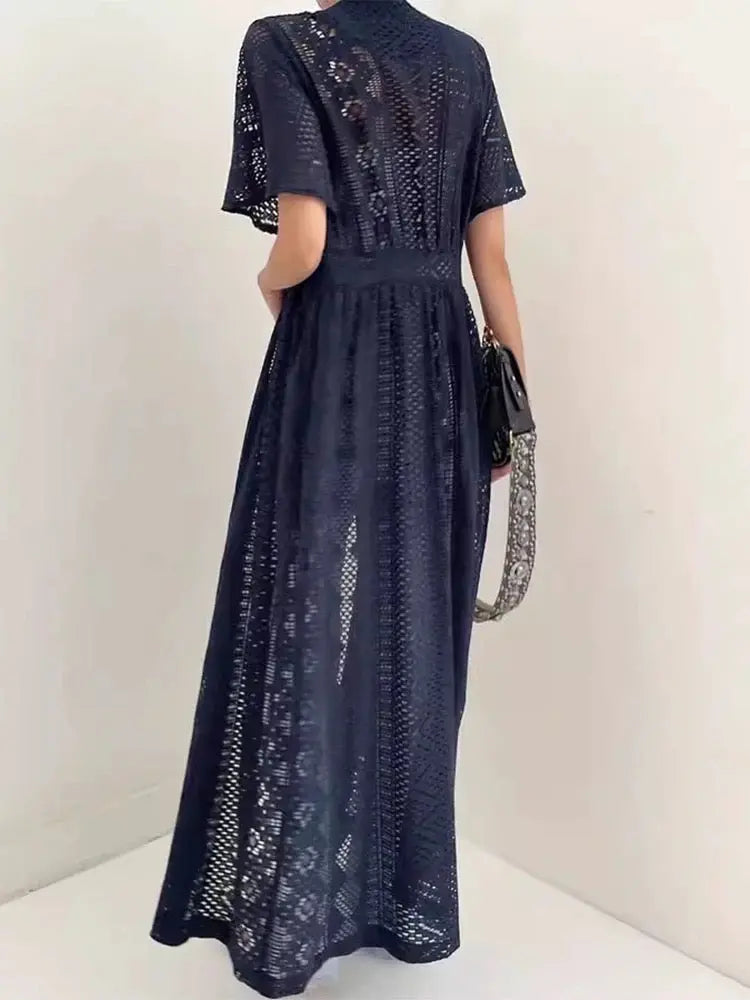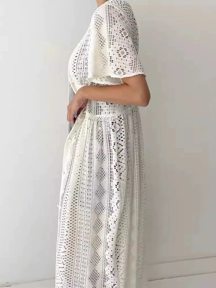 Indulge in luxury with our Hollow Crochet Lace Dress. This elegant piece features intricate crochet lace detailing for a sophisticated and exclusive look. Made with high-quality materials, it offers both comfort and style. Perfect for any special occasion, this dress is a must-have in every fashion-forward wardrobe.