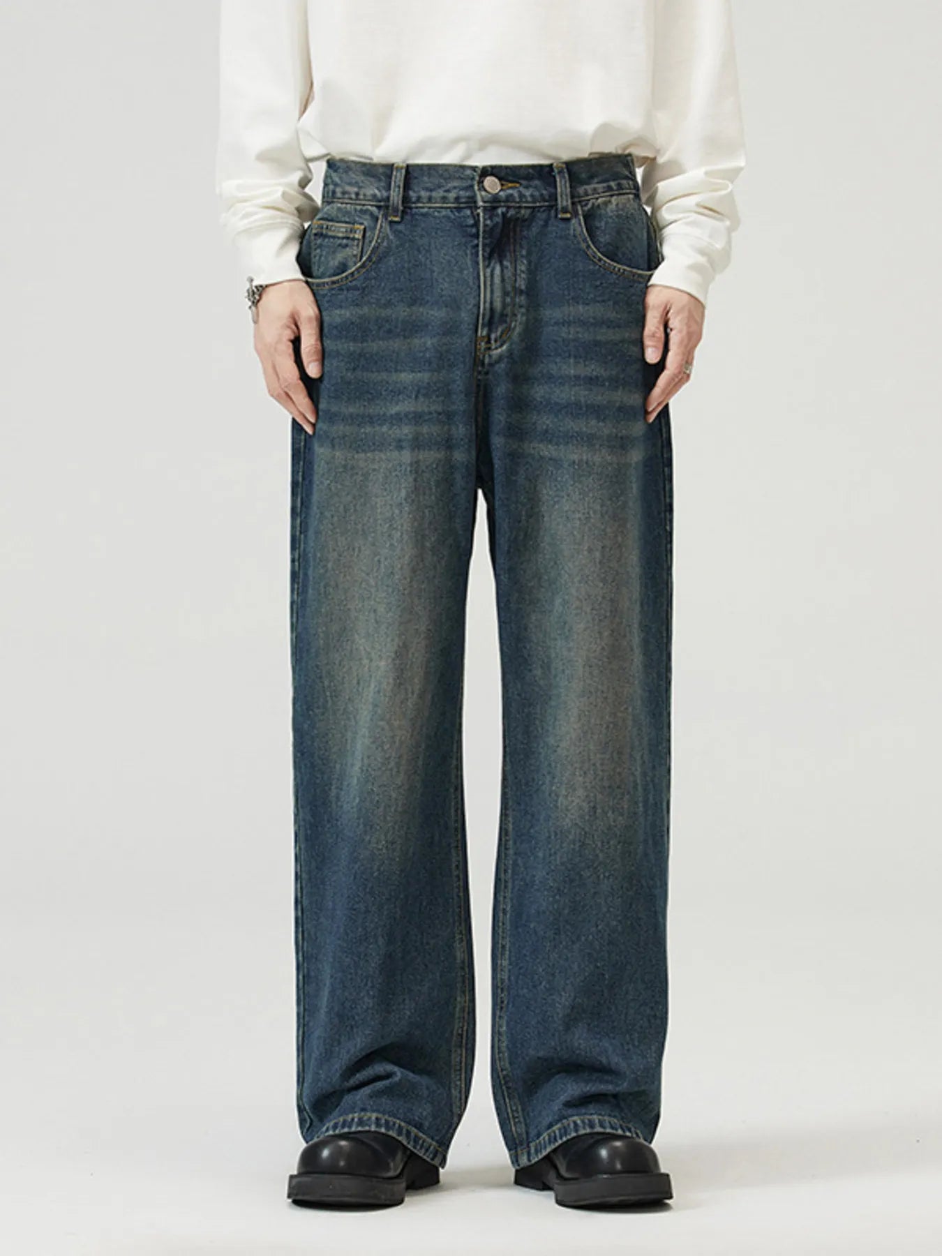 Men's Full Size Washed Straight Jeans Plus Size