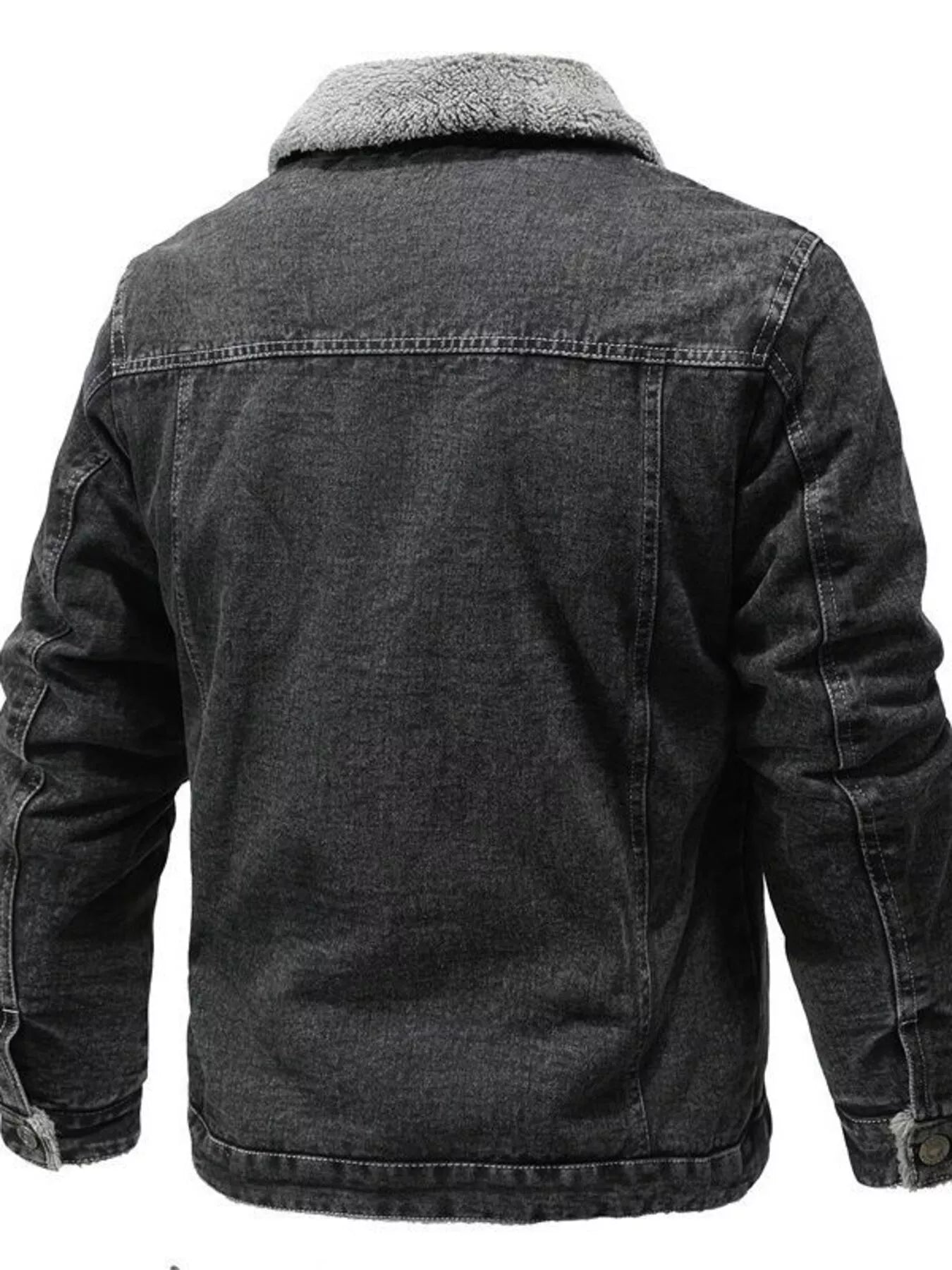 Men's Plus Size Button Up Sherpa Lined Denim Jacket