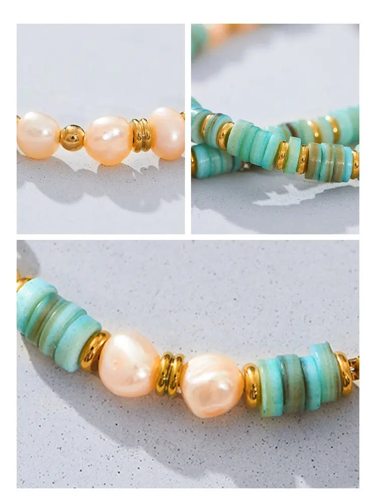This Original Verdant Green Shell Pearl Necklace features summer green freshwater pearls delicately set in a verdant green shell. The result is an elegant and unique piece that adds a touch of natural beauty to any outfit. Expertly crafted and perfect for any occasion, this necklace is sure to impress.