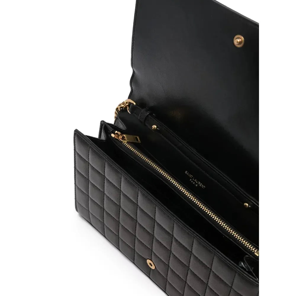 Preço regular $1,578.00 USDblack lambskin matelassé effect signature Cassandre logo plaque detachable chain-link shoulder strap foldover top with press-stud fastening partitioned compartment internal zip-fastening pocket internal card slots debossed internal logo gold-tone hardware This piece comes complete with a protective dust bag.