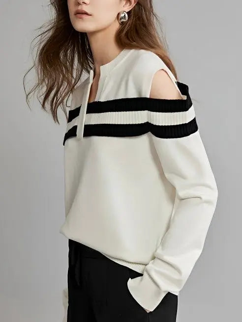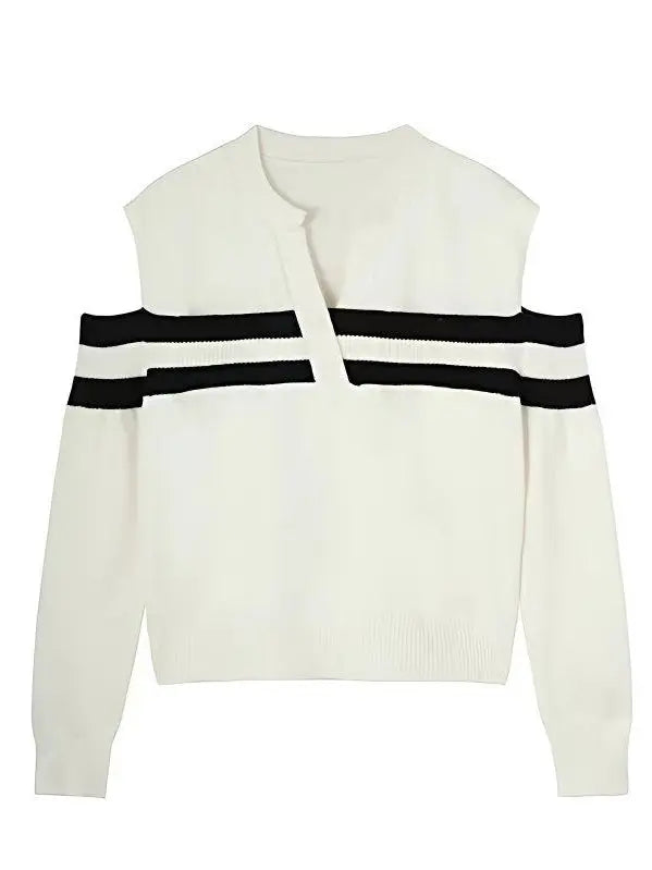 Indulge in luxury with our V-Neck Off-Shoulder Sweater. This elegant piece features a feminine and alluring v-neck and off-shoulder design, perfect for showcasing your collarbone and neckline. Made with high-quality materials, this sweater is both soft to the touch and stylish, making it a must-have for any fashion-forward wardrobe. Elevate any outfit and turn heads with this exclusive piece.